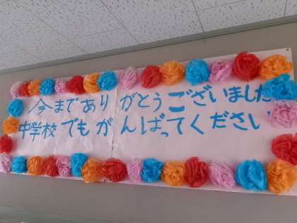 廊下や昇降口の掲示板が、卒業式バージョンになりました。