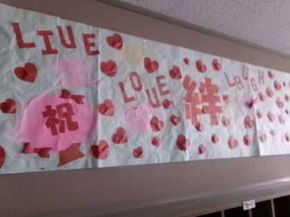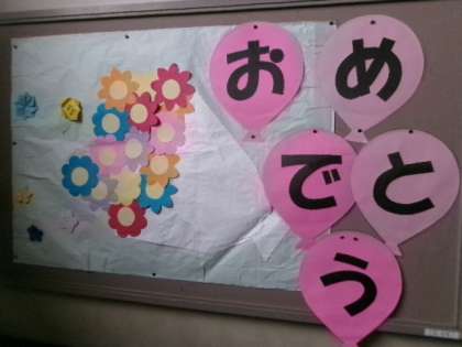 卒業式に向けて、おめでとうの掲示が貼られました。