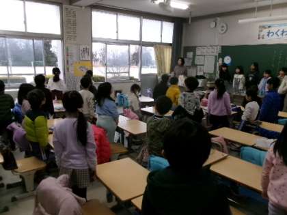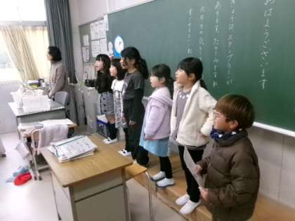 1年生が朝の会で、校歌を歌っていました。もうすっかり歌詞は覚えましたね?