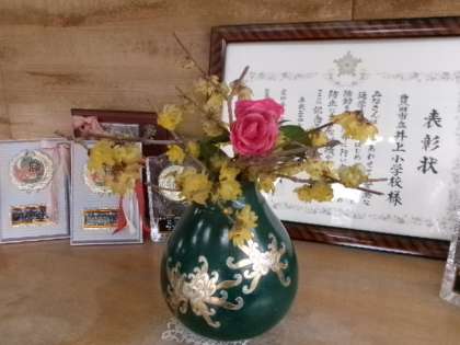 玄関にお花が飾られています。