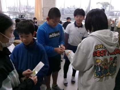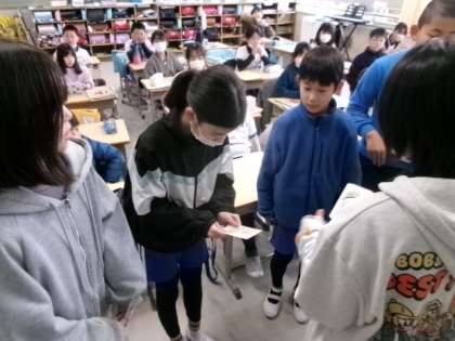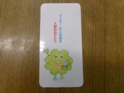 3月5日(水)朝、6年生から「イノミー・小人を探せ」で高得点だった児童へ、しおりのプレゼントがありました。