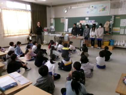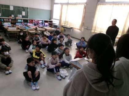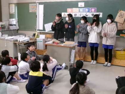 朝の会で6年生が2年生教室に出向き、交流あそびの告知をしました。明日が楽しみですね。