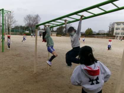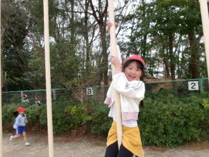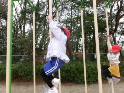 ふれあいタイムです。たくさんの子がいろんな遊具で遊んでいます。