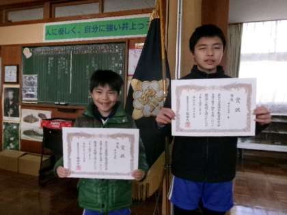 書き初め大会の表彰伝達をしました。素晴らしい作品でした。