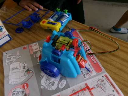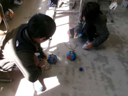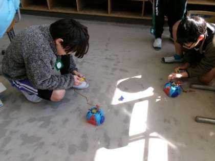 5年生がフットサルロボを動かしていました。
