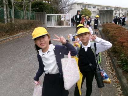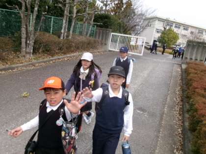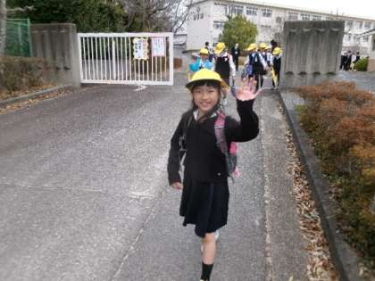 下校時の西門です。笑顔がいいですね。