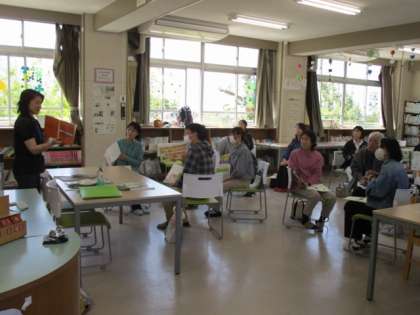 中央図書館主催の「読み聞かせボランティア基礎講座」を本校の読み聞かせボランティアを対象に開催しました。読み聞かせの基本を学び、グループで実際に読み聞かせを行いながらの研修でした。また、読み聞かせ100選の本も持ってきていただいて手に取って読むこともできました。