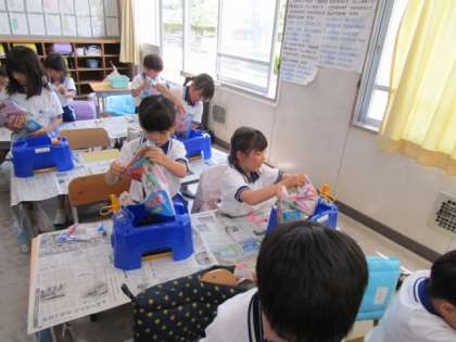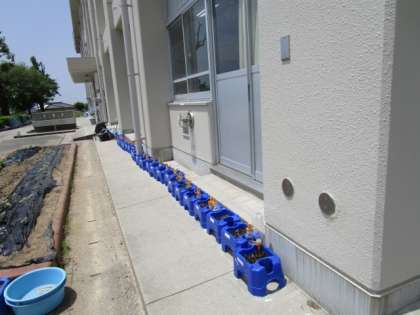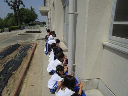 1年生が、鉢にアサガオのたねを播きました。自分で、鉢に土を入れ、たねを播き、水をあげました。芽が出るのをみんな楽しみにしていました。