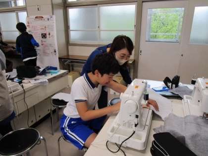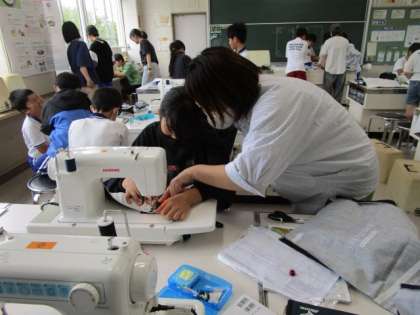 6年生は、家庭科の授業で、ミシンを使ってナップサックを作っています。始めは思うように真っ直ぐに縫えなかったり、縫い返しがうまくできなかったりしましたが、ミシンボランティアさんのアドバイスもあり、徐々に上手になってきました。ミシンボランティアの皆さんありがとうございました。