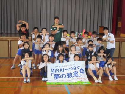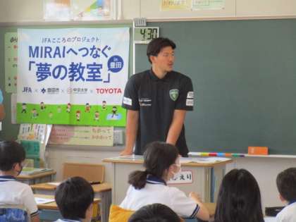 夢の教室が5年3組で行われました。夢先生として、TOYOTAヴェルブリッツの田村陣悟選手に来ていただきました。前半は「ゲームの時間」、田村選手と一緒に子どもたちはゲームを楽しみました。後半は「トークの時間」、田村選手がどのように夢をかなえてきたかという話を聞きました。子どもたちにとって、とても有意義な時間となりました。