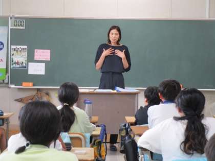 夢の教室が5年2組で行われました。夢先生として、バレーの元デンソーエアリービーズの高橋潤子選手に来ていただきました。前半では、一緒に作戦考え、すべてのゲームをクリアすることができました。また、後半の話では、高橋選手の体験から、「苦しいことは、自分を変えるチャンス」と苦しいことをのりこえると成長があるという教えていただきました。