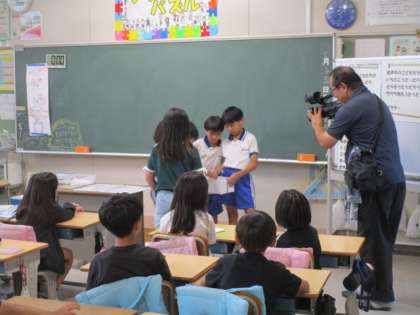 ひまわりネットワークの学校紹介番組「ボクらの学び舎」の収録が行われました。普段の授業の様子やワンワンデーの活動などを撮っていただきました。放送は10月頃になります。どんなふうに井上小学校の子どもたちの普段の様子が映し出されるか楽しみです。放送日時などが決まりましたらお知らせします。