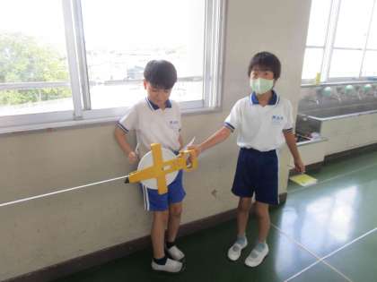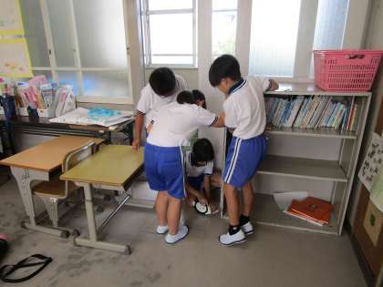 3年生は、算数の授業で教室にあるものの長さを予想して、実際に自分たちで長さをはかります。扉や書架の高さや廊下の長さなど、班ごとにはかりたいものを決め、予想し、はかりました。実際にはかると予想とかなり違うこともあり驚く姿も見られました。