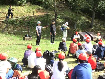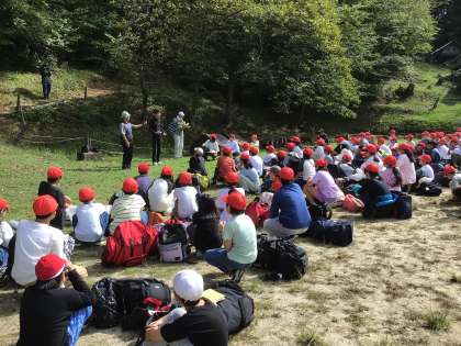みんな元気に野外センターに到着しました。入所式で,所長さんから六所の自然を十分に楽しんでくださいというお話をいただきました。