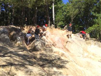 いよいよキャンプ最後のプログラムのアスレチックです。森の中に作られたコースで、体いっぱいつかって活動をしました。