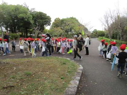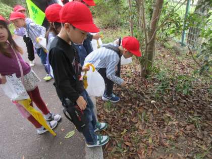 1年生は、運動公園に「秋みつけ」に出かけました。運動公園には、どんぐりなどの木の実、赤や黄色に紅葉した落ち葉などがあり、1年生は、「これかわいい」「きれいなはっぱ」「これはなんだろう」とたくさんの秋を見つけ、拾ってきました。