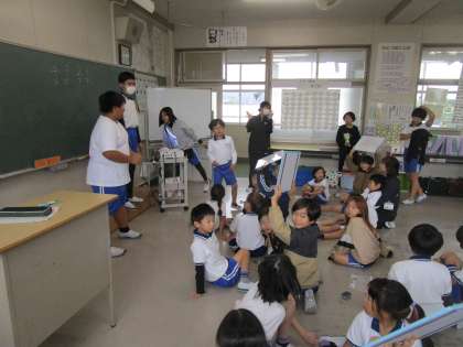 ゆりのき交流遊びが行われました。縦割り活動で6年生が中心となって遊びを考え、1年生から6年生が一生になって遊ぶ活動です。回数を重ねるごとに、6年生は司会進行が上手になり、みんなで楽しく遊んでいる様子が見られました。