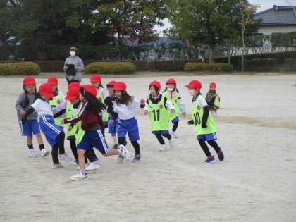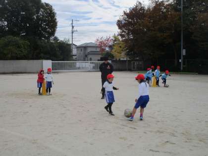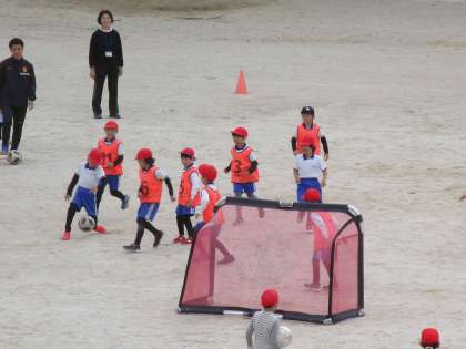 グランパスエイトのコーチ3名で1年生と2年生にサッカーボールのけり方などを教えていただきました。ボールをけるポイントを習い、最後にみんなで楽しくサッカーをしました。