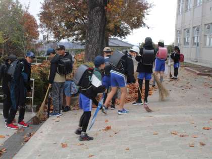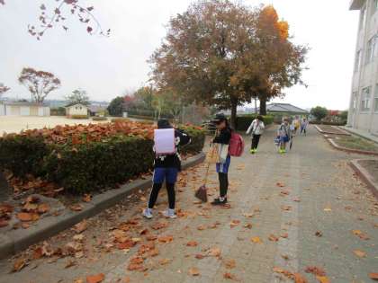 週明けで、学校のゆりの木の落ち葉がたくさん昇降口前にあり、その落ち葉を環境委員が、朝から掃除をしてくれました。昇降口前がみるみるうちにきれいになりました。環境委員の皆さんありがとうございました。