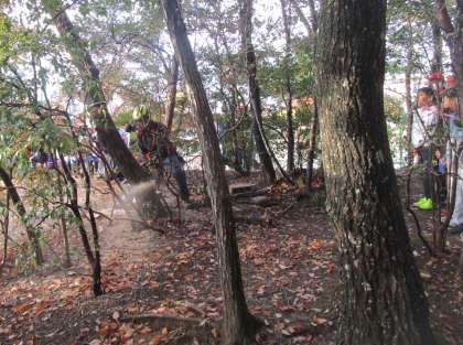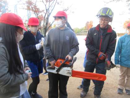 5年生の社会科の授業では、林業の学習で、豊田林業組合の出前授業を受けました。豊田市の林業の話や、林業組合の仕事につて聞きました。後半は、なかよし山の木を実際に伐採していただき、その様子を見学しました。実際に見た伐採の迫力に驚いた子も多くいました。