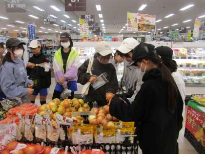 6年生は、家庭科の調理実習では、班で作る調理を決め、その材料をメグリアに買いに行きました。事前に考えた材料表をみながら、食材を選びました。中には、野菜を一個一個手に取りよいものを選んでいる姿も見られました。こうした買い物の体験も大切な学習の一つです。