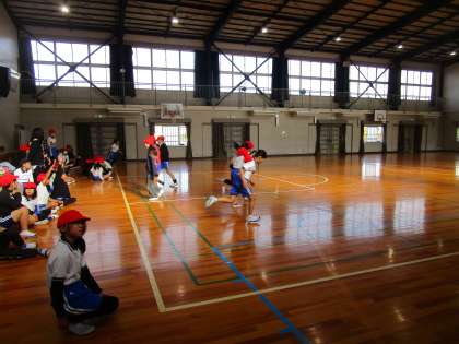 4年生は、体育の授業でシャトルランに挑戦しました。前回の記録よりも多くの記録を目指して挑戦しました。