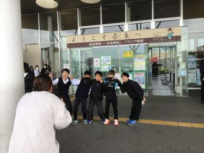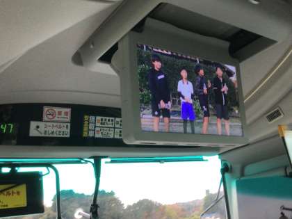 針テラスで休憩をとりました。バスの中では、バスレク係で作った動画を見ました。みんなで大爆笑。ユーチューバなみの動画でした。