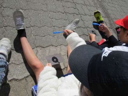 3年生は、理科の授業で「虫めがねで日光を集めよう」を行いました。虫眼鏡で黒い紙に日光を集めると煙が出てきて子どもたちは大喜び。