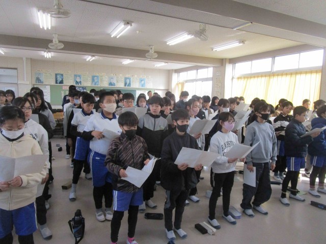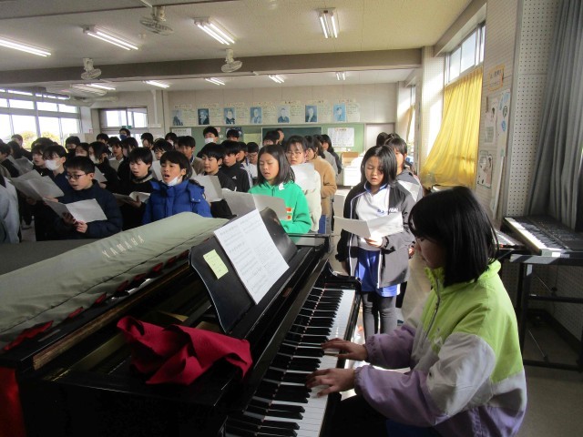6年生は、卒業式で歌う歌の練習を始めました。歌を聞いていると、卒業式がもうすぐという気になってきます。