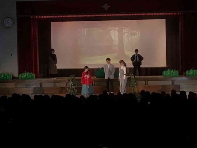6年生は卒業プロジェクトとして演劇「ふたりのロッテ」を11月から練習してきました。いよいよ本番です。第1部として、御船こども園、井上幼稚園の年長さんと6年生の保護者を招待して上演しました。たくさんの観客を前に、見事に演じきる6年生、笑いが起こる場面もありました。園児にとっても心に残る劇となったはずです。