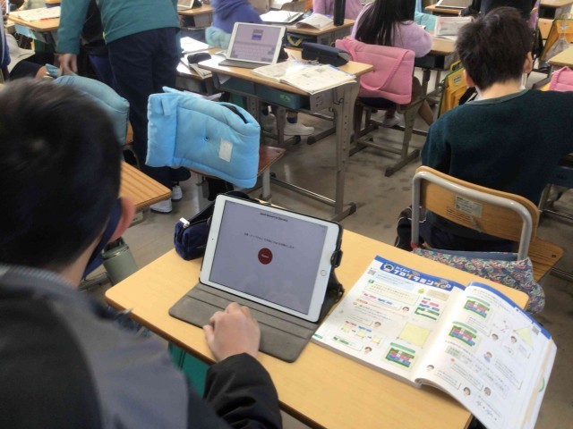 豊田市では来年度学習用タブレットがすべて新しくなります。そこで、これまで使っていた学習用タブレットをリセットして返却します。その作業を学級ごとに今行っています。