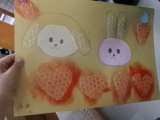 3年生のプチプチシール入り紙はんがです。模様を生かしたよい作品が出来上がってき...