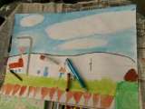 1年生の「さくひんバック」です。上手に絵を描いていますね。