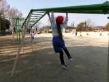 ふれあいタイムに、上手に「うんてい」で遊んでいる子がいました。寒くて手がかじか...