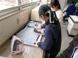 5年生「エプロンづくり」です。ミシンだけでなくアイロンも使うんですね。