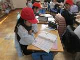 2年生は、国語の授業で、かるたとりを会いました。おてつきをしないように頭の上に...
