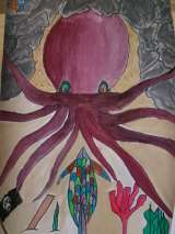 各学年の教室前廊下に、読書感想画が掲示してあります。