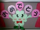 井上小キャラクター「イノミー」の紹介をします。1枚目は階段の掲示板、2枚目は玄...