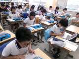 第1校時、6年生が国語と算数の月例テストをしていました。努力の成果が出ましたか...