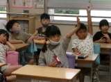 学校訪問の続きで、1年生3クラスの様子です。1枚目は音楽科「はくにのってリズム...