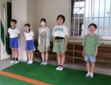 6年生の歌の後、生活委員会が夏休みの生活の注意を、一人ひとりが大きな声で呼びか...