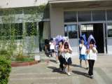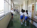 5年生は避難訓練の後、消火器訓練を行いました。水消火器を使って、消火器の使い方...