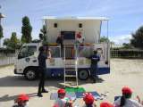 6年生は、避難訓練後、地震体験を行いました。消防本部から「防サイくん」(地震体...