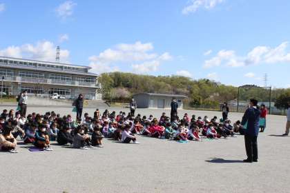 学校生活が始まりました。初日には、一番大切な「いのち」に関わる避難訓練が行われました。静かに早く避難することができました。