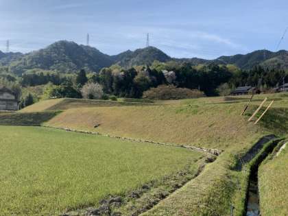 学区を歩くことで、改めて石畳の美しさを感じました。自然の美しさはいうもでもありませんが、写真にもあるように田んぼの畔などもきれいに刈り込んであり、地域の方の心の美しさも実感しました。