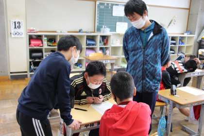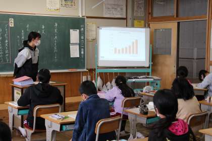 今日の授業2 公開日 2021/04/13 更新日 2021/04/13 お知らせ 5年生と3年生は、ICT機器を活用した授業でした。個々の学習を保障するタブレットPCとは違って、学級全体で共有しながらの授業にとても有効です。6年生は、よりよい学校にするための話し合いです。自分のことだけでなく、みんなのために考えることで、視野が広がっています。