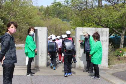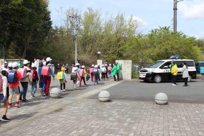 地域の見守り隊として「よすが号」がやってきました。民生・児童委員さんを中心に活動してくれています。子どもたちのために活動していただき、ありがとうございます。