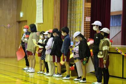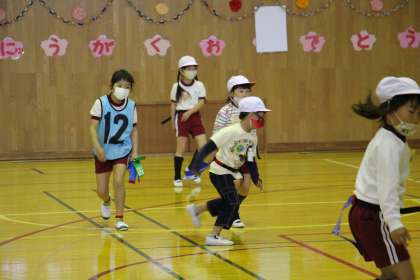 入学を祝う会5 公開日 2021/04/28 更新日 2021/04/28 お知らせ 5年生は、一緒に楽しめるゲームを行いました。初めに、しっぽ取りを行いました。5年生の鬼から必死で逃げる姿が、少し頼もしく感じました。 次に、ゼスチャーゲームです。出されたお題をゼスチャーで次の人に伝えました。表現力豊かに伝えることができました。