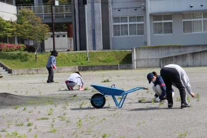 PTA愛校活動2 公開日 2021/05/08 更新日 2021/05/08 お知らせ 保護者の方が作業している間、児童はDVD鑑賞をしました。外で活動するにちょうどよいくらいの気候でした。保護者の方に交じって教員も活動しました。
