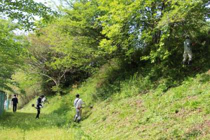 PTA愛校活動3 公開日 2021/05/08 更新日 2021/05/08 お知らせ 草刈り機のプロが集まるこの地域ならではの、効率の良い活動ができました。フェンス際の細かい作業は、手で確実に刈っていただきました。